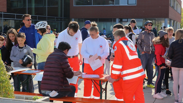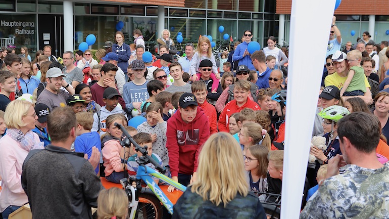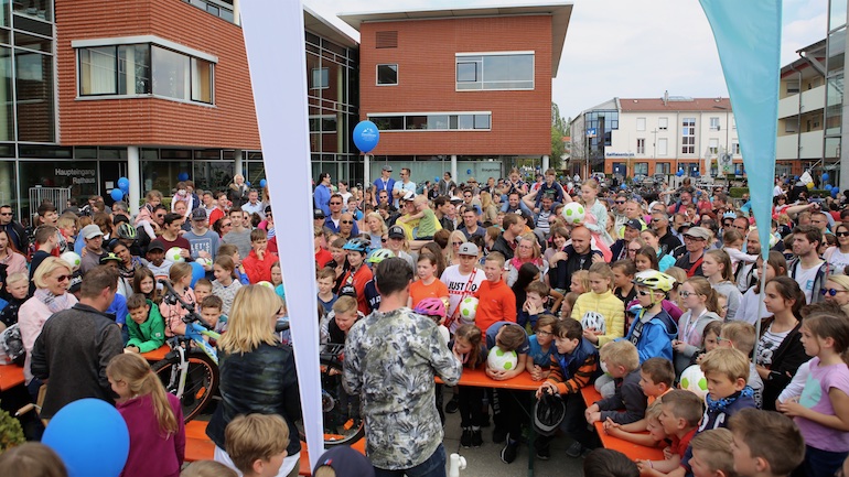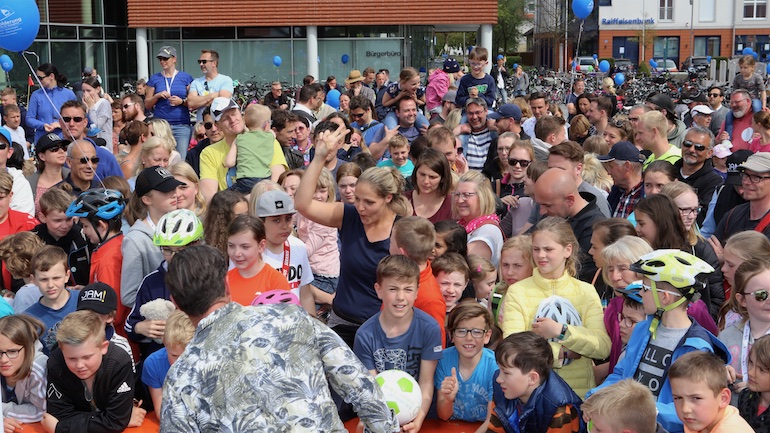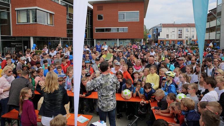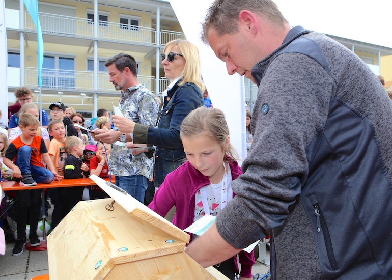 Für alle Teilnehmer war die Radlrallye wieder ein Highlight im Kalenderjahr 2019. Ganze Radler-Gruppen bildeten sich und strampelten gemeinsam Richtung Ziel. Somit waren auch an diesem 1. Mai die Straßen in und um Hallbergmoos voll mit Fahrrädern. Der erste Paragraf der STVO: „Vorsicht und gegenseitige Rücksichtnahme“ wurde hier natürlich großgeschrieben. Ein großer Dank von Heiko Schmidt, 1. Vorstand der Werbegemeinschaft Hallbergmoos in Aktion, ging deshalb auch an das Bayerische Rote Kreuz, die mit zwei Rettungswägen allezeit für eine schnelle medizinische Versorgung der Radler bereitstanden. Nach seiner kurzen Rede und dem Dank für die zahlreiche Teilnahme konnte die Gewinnverlosung pünktlich um 15.00 Uhr starten. Gespannt und erwartungsvoll warteten die vielen Teilnehmer auf die Ziehung der Gewinner. In diesem Jahr hieß die kleine Glücksfee Sophie, die die Gewinner aus der Lostrommel ziehen durfte. 97 Teilnehmer durften sich über Fußbälle und Hallbergschecks im Wert von 10 Euro freuen. Noch größer war der Jubel bei den drei ersten Gewinnern.