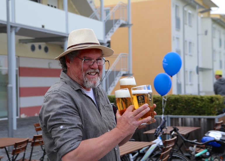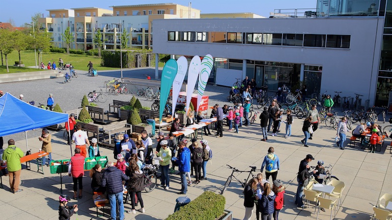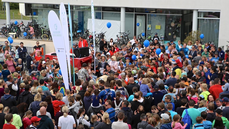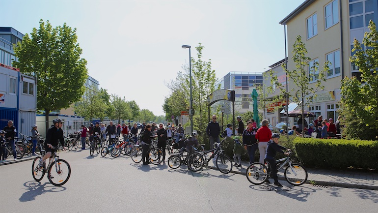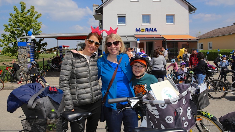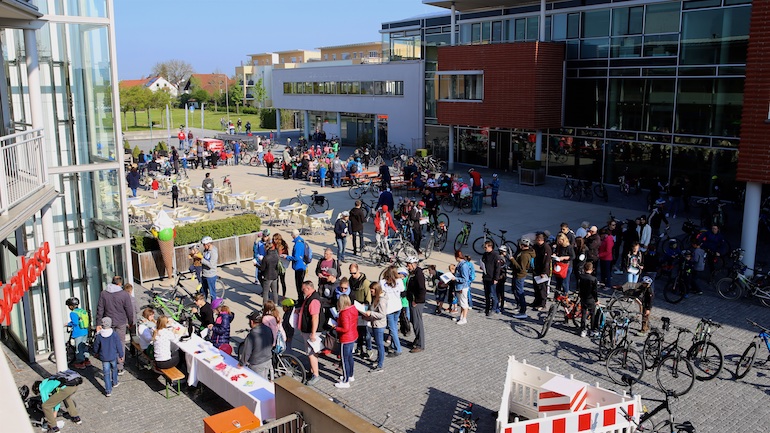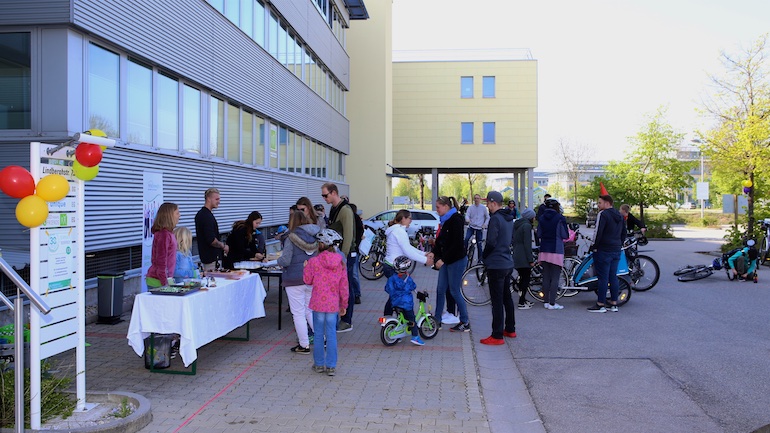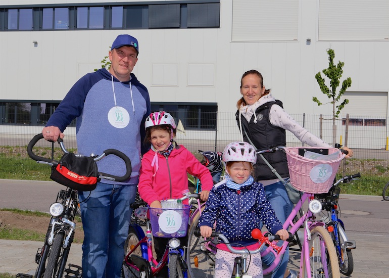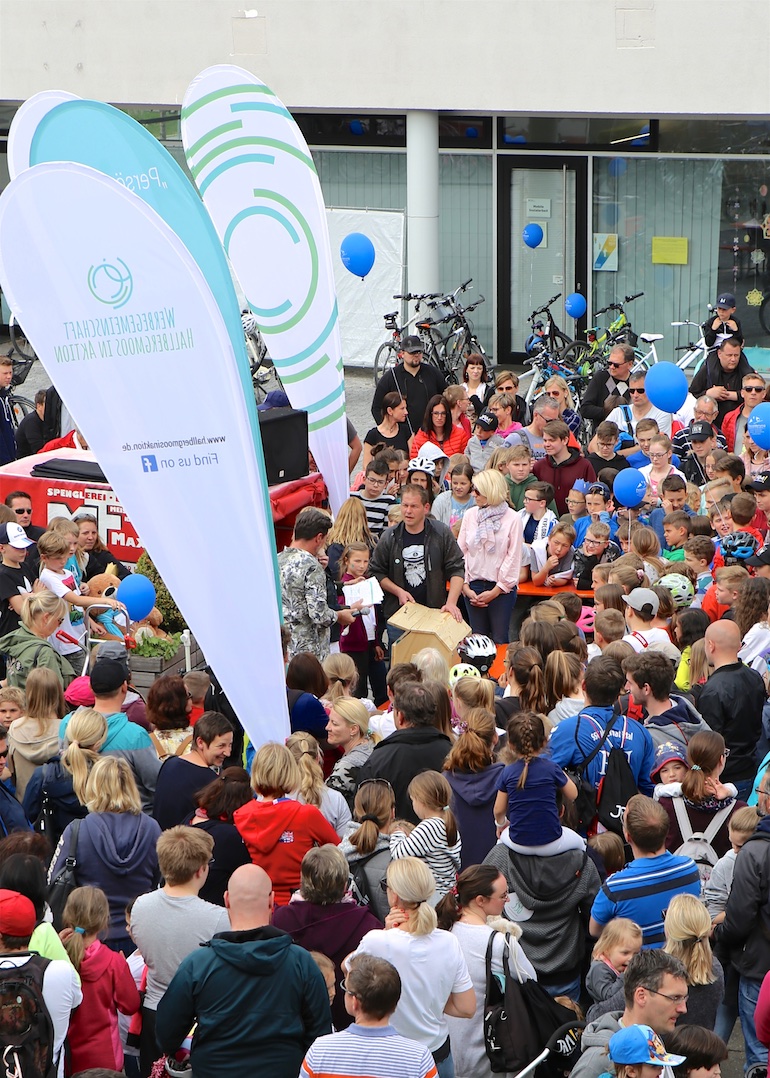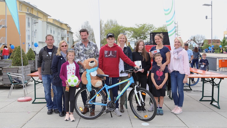 Der 3. Platz, eine RayBan-Sonnenbrille, ging an Ivana Sneler-Pintaric. Über stylische Beats Kopfhörer freute sich Franziska Schappert. Noch vor Bekanntgabe des Hauptpreises sang die gesamte Radlgemeinde dem Geburtstagskind, der Werbegemeinschaft Hallbergmoos, ein schallendes Happy Birthday. Und dann durfte Sebastian Eder den 1. Preis, ein nagelneues Mountainbike, sichtbar überrascht entgegennehmen.