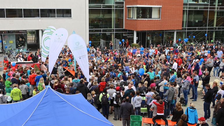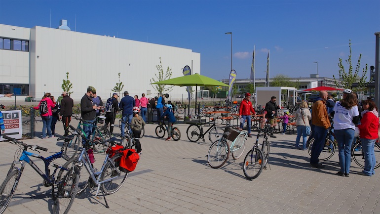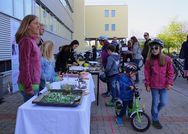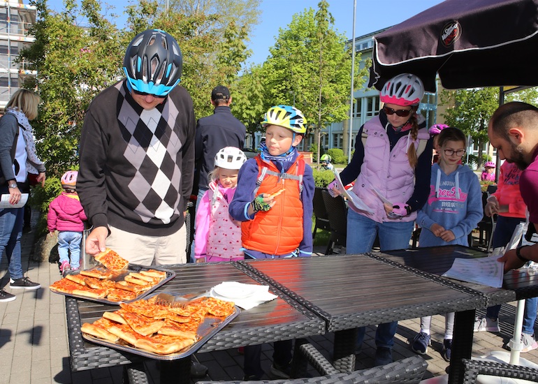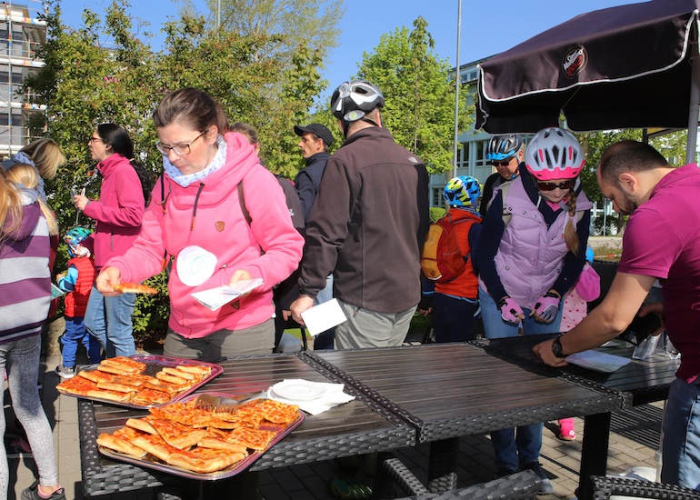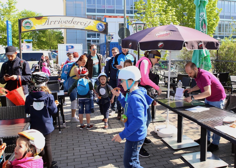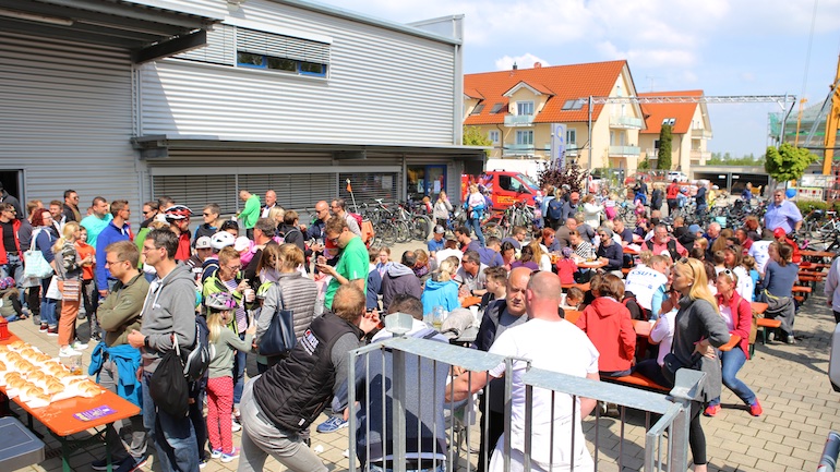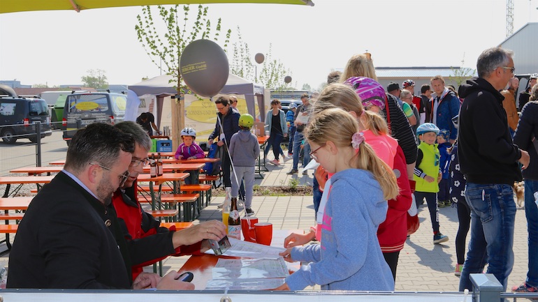 Dank des herrlichen und sommerlichen Wetters gab es während der gesamten Radtour kreuz und quer durch Hallbergmoos auch an den 21 aktiven Ständen der Mitgliedsbetriebe hohen Andrang. Schon an den beiden ersten Ständen, dem Arbeitskreis Radwege der Gemeinde und der Sparkasse Hallbergmoos, bildeten sich meterlange Warteschlangen, um sich die ersten Stempel abzuholen. Gut versorgt mit einem Apfel oder einer süße Waffel konnte nun die Fahrt beginnen. Auf der Strecke durch den Ort gab es nicht nur viele Präsente wie zum Beispiel Rucksäcke bei der Fahrschule Jam oder Magnesiumpulver gegen den Muskelkater an der Hallberg Apotheke, sondern auch jede Menge Süßigkeiten und andere Leckereien zu erhaschen.