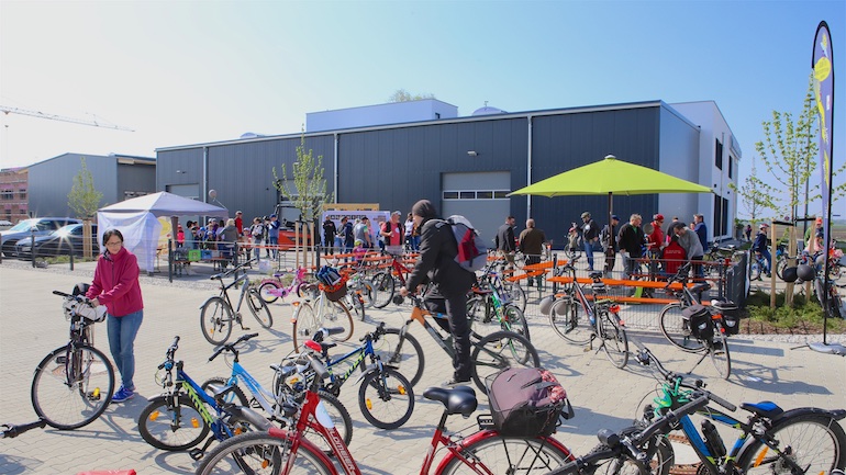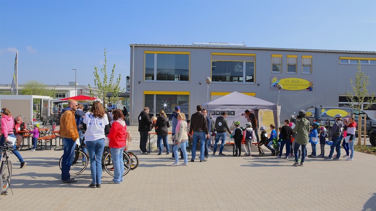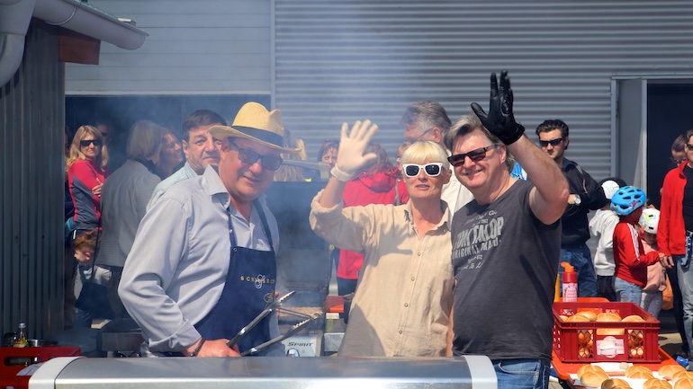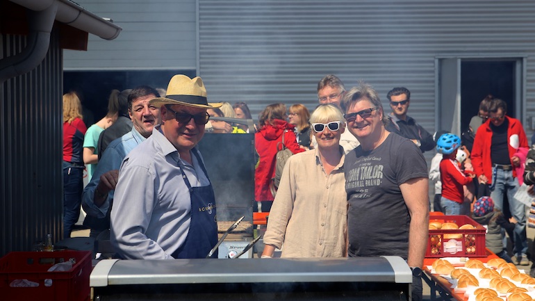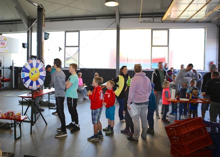 Wie jedes Jahr kam aber auch das leibliche Wohl für Groß und Klein nicht zu kurz. Bei einer gemütlichen Pause und einen Plausch mit anderen Radlern oder Freunden bei einem kühlen Bier oder einer Limo, deftigen Würstchen oder Kaffee und Kuchen setzte man sich bei Elektro Henning oder im Jugendwerk Birkeneck nieder. Lange Schlangen bildeten sich auch bei einigen anderen aktiven Ständen. So wie bei der KFZ-Werkstatt Auto Hallberg, Morina Sonnenschutz oder dem Friseursalon MCrew. Hier durfte man anderweitig am Rad drehen, dem Glücksrad nämlich, und kleine Preise gewinnen. Der Weg führte in diesem Jahr auch einmal quer durch das stetig wachsende Gewerbegebiet. Die neu angesiedelten Mitgliedsbetriebe, wie Fliesen Waldhier, SUW Berger oder auch Physio 4 Friends, nutzten die Radlrallye mit ihren aktiven Ständen, an denen einiges geboten wurde, um sich und ihre neuen Standorte vorzustellen.